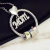 This necklace incorporates a detachable structure design and hides the interface in the love heart shape design. The big ring adopts a twisted rope design, which represents a family united tightly, and you can also add small rings that can be customized to the name and birthstone.
