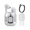 [LED Digital Display & Colorful Design] Accurate LED display of the power of charging case and both earbuds, allowing you to know the power status of the wireless earbuds and charging case at any time. This series of Bluetooth earphones with translucent charging case, futuristic texture, 5 different colors. The waterproof earbuds can effectively prevent splash damage caused by sweat and raindrops.