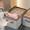 Upgraded Material: The drawer organizer clothes are made of non-woven fabric, reinforced with cardboard on four sides-- odorless and more durable than the Nylon clothing drawer organizer. The interior cardboard keeps the pants organizer for the closet firm and upright, easy to stack up.