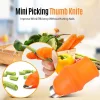 - WIDELY USED: The thumb cutter is suitable for picking most of the fruits and vegetables like strawberries, tomatoes, beans, eggplants, cucumbers, etc. It can also be used to do some gardening and trimming work.