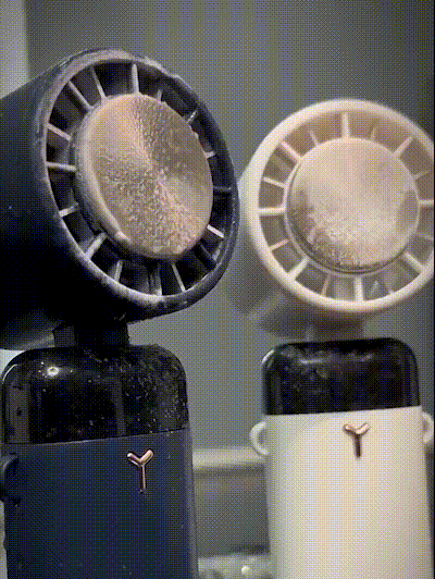 Personal Fan with Ice Compress Function -- Press the button to the refrigeration mode, the semiconductor cooling plate can be instantly cooled to 50 °F, and its surface will appear a lot of small water droplets. You can use it to apply cold compress to your face, wrists or neck, can instantly cool your body, moisturize your skin, and give you a surprise ice-cold summer. It is also a nice face fan for makeup.