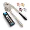 Material: This garlic press is made of high quality stainless steel, which is sturdy and durable. Professional grade kitchen gadgets. Can stand the test of time without worrying about rusting the garlic press.