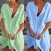 Design: A sexy neckline/ loose fit/ plain/ A Line/ above knee mini/ High low hem/ Womens Summer Cloth.